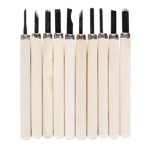 Набор резаков по дереву 10 шт, представляет собой комплект, в который входит 10 ножей для проведения художественных работ по мягкому дереву, а также для обрезки линолеума. Лезвия резаков выполнены из инструментальной стали, которая прошла термическую обработку. Рукоятки изготовлены из дерева.