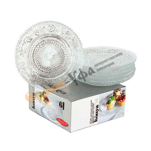 Турецкая компания Pasabahce существует на мировом рынке уже полвека и успешно реализует стеклянную посуду более чем в ста странах мира. Современный дизайн, доступные цены и высокое качество стеклянных изделий позволили этой марке завоевать популярность и у барменов, и у домохозяек. Набор тарелок Pasabahce с рифлеными стенками и украшенным резным орнаментом дном, выполнен из упрочненного непористого стекла. Изящные тарелки позволят красиво сервировать стол и послужат элегантным элементом декора. В наборе шесть тарелок. Их можно мыть в посудомоечной машине и использовать в микроволновой печи.