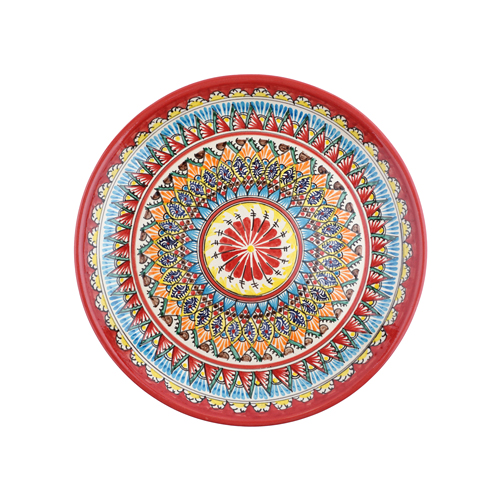 Тарелка ЛЯГАН 380мм Красный Мехроб, ручная роспись, Риштанская керамика Узбекистан, 1/10