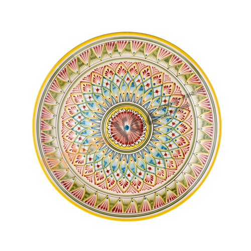 Тарелка ЛЯГАН 380мм плоский Желтый Мехроб NEW, ручная роспись, Риштанская керамика Узбекистан, 1/10