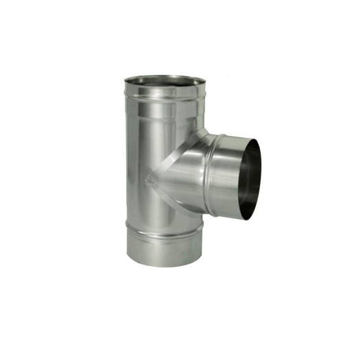 Тройник предназначен для изменения направления дымового канала, используется в местах присоединения теплогенерирующего аппарата к основному каналу. Выполняет функцию очистного приспособления, облегчает обслуживание дымохода.