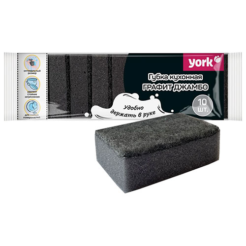 Губка для посуды 10 шт Графит Джамбо YORK, 1/40