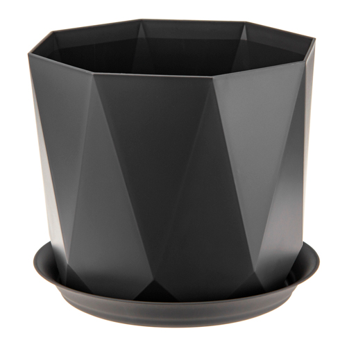 Кашпо 1 л IDEA ПРИЗМА М 3137, 130 мм, с поддоном, графитовый