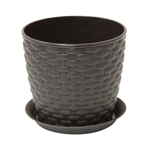 Кашпо 1 л IDEA РОТАНГ М 3080, 135 мм, с поддоном, коричневый ротанг