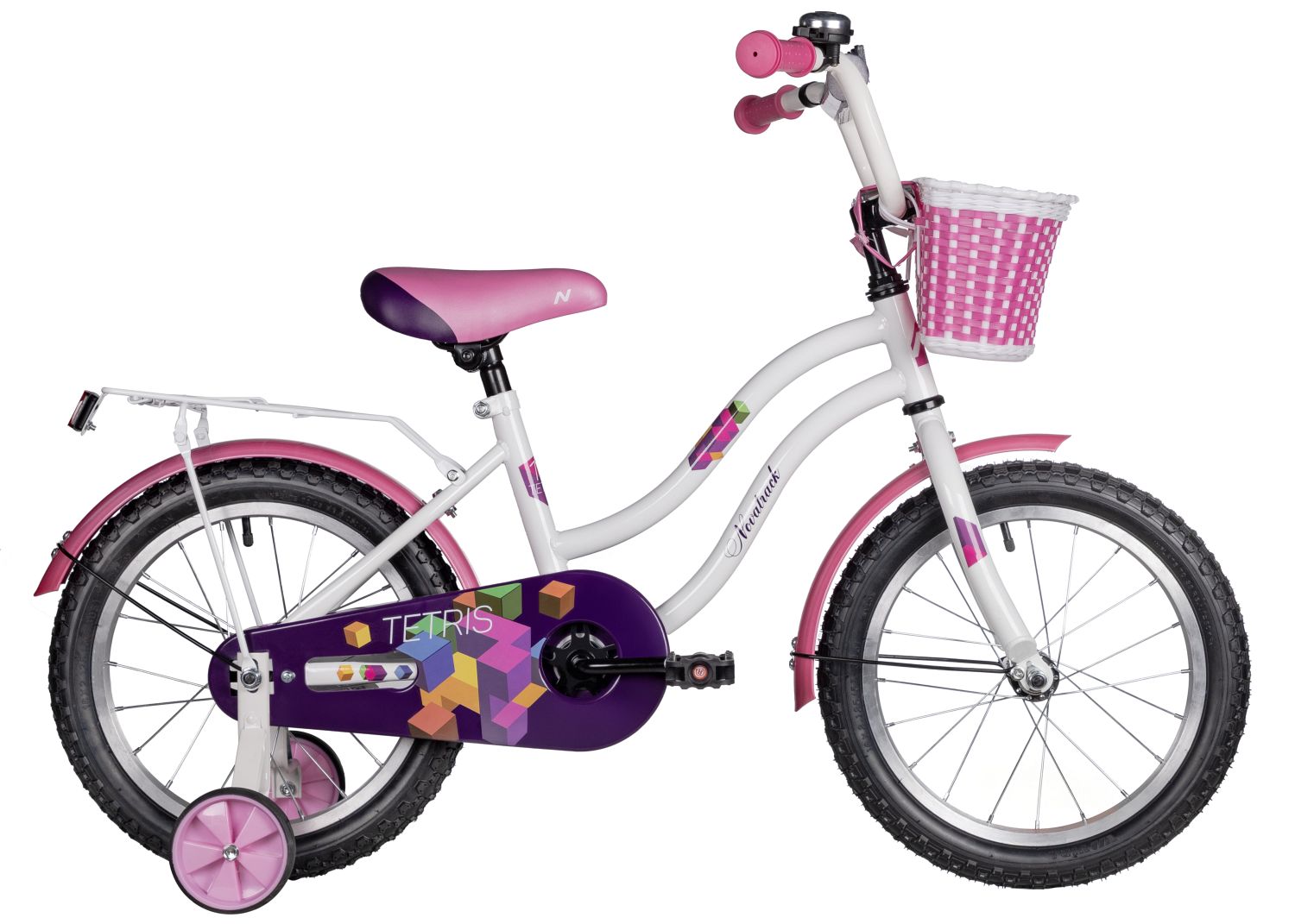 Велосипед NOVATRACK 16, TETRIS белый, тормоз нож, крылья цвет, багажник, корзина, полная защ.цепи