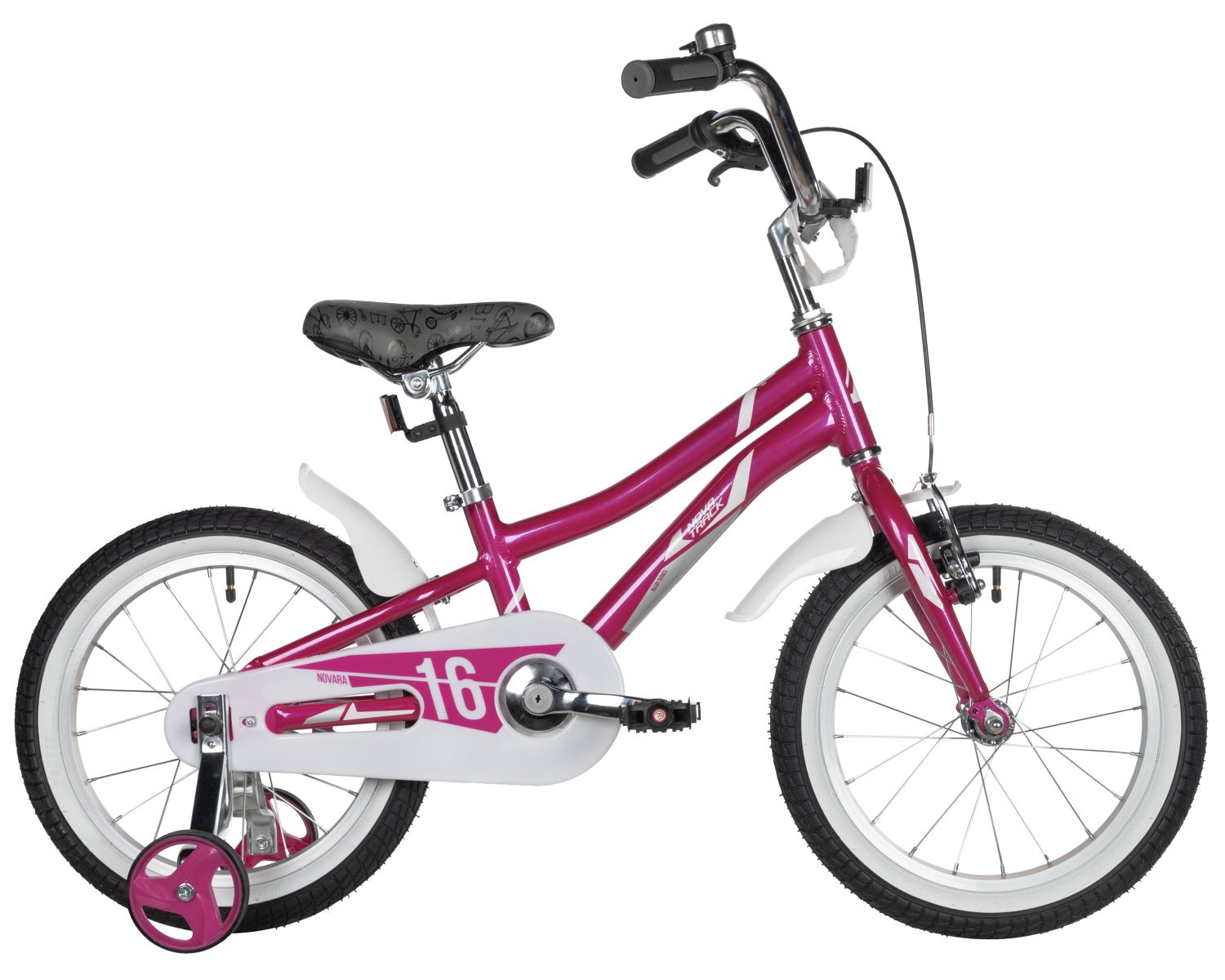 Велосипед NOVATRACK 16" NOVARA алюм., фуксия, пер.руч., зад.нож. тормоз, короткие крылья, полная защита цепи