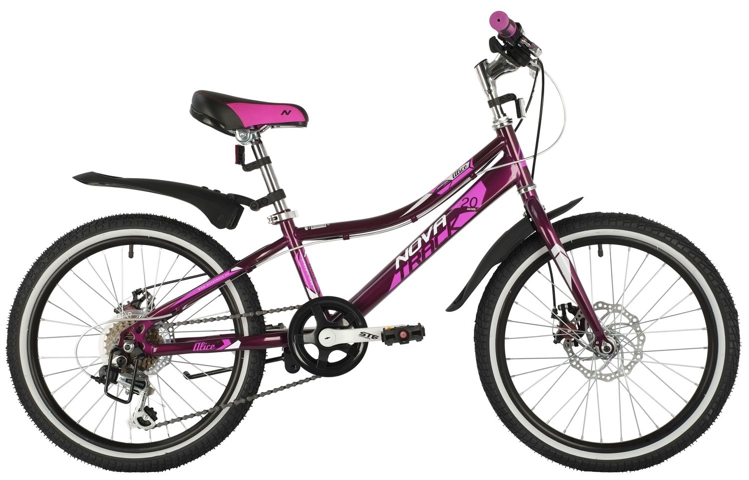 Велосипед NOVATRACK 20, ALICE пурпурный, стальная рама, 6 скор., Shimano TY21/Microshift TS38, диск