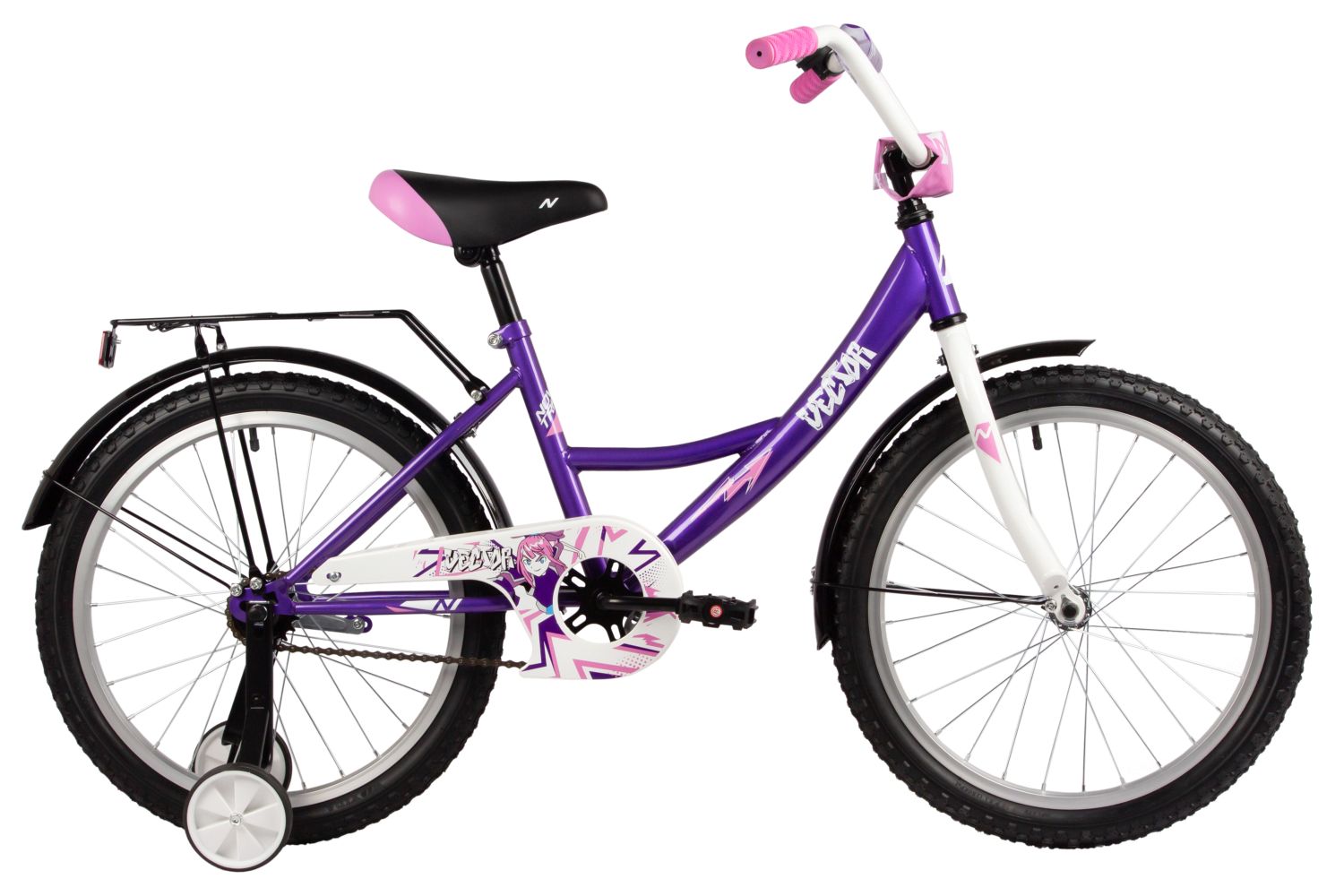 Велосипед NOVATRACK 20, VECTOR, фиолетовый, тормоз нож., крылья и багажник чёрн., защита цепи
