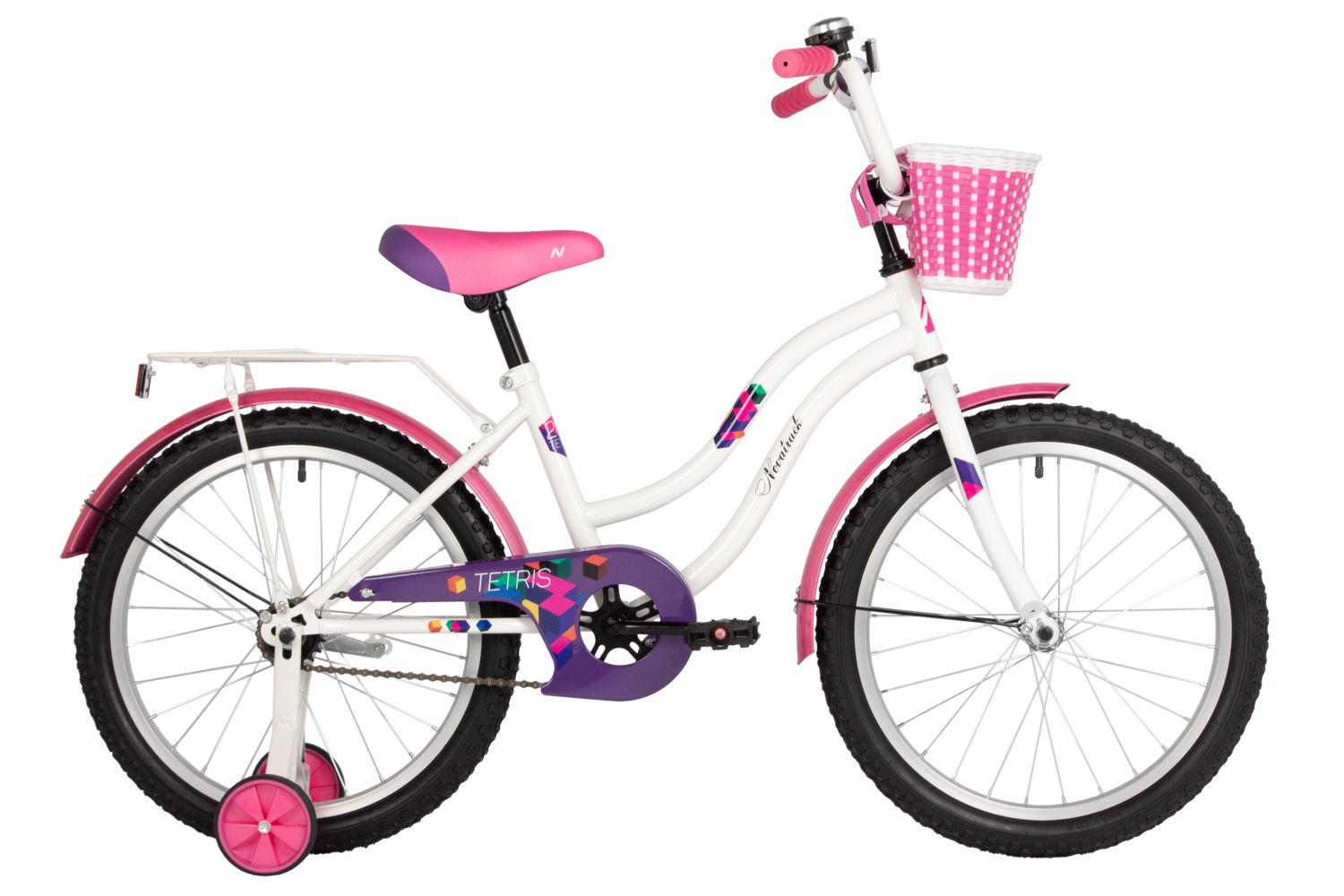 Велосипед NOVATRACK 20, TETRIS белый, тормоз нож, крылья цвет, багажник, корзина, защ.цепи