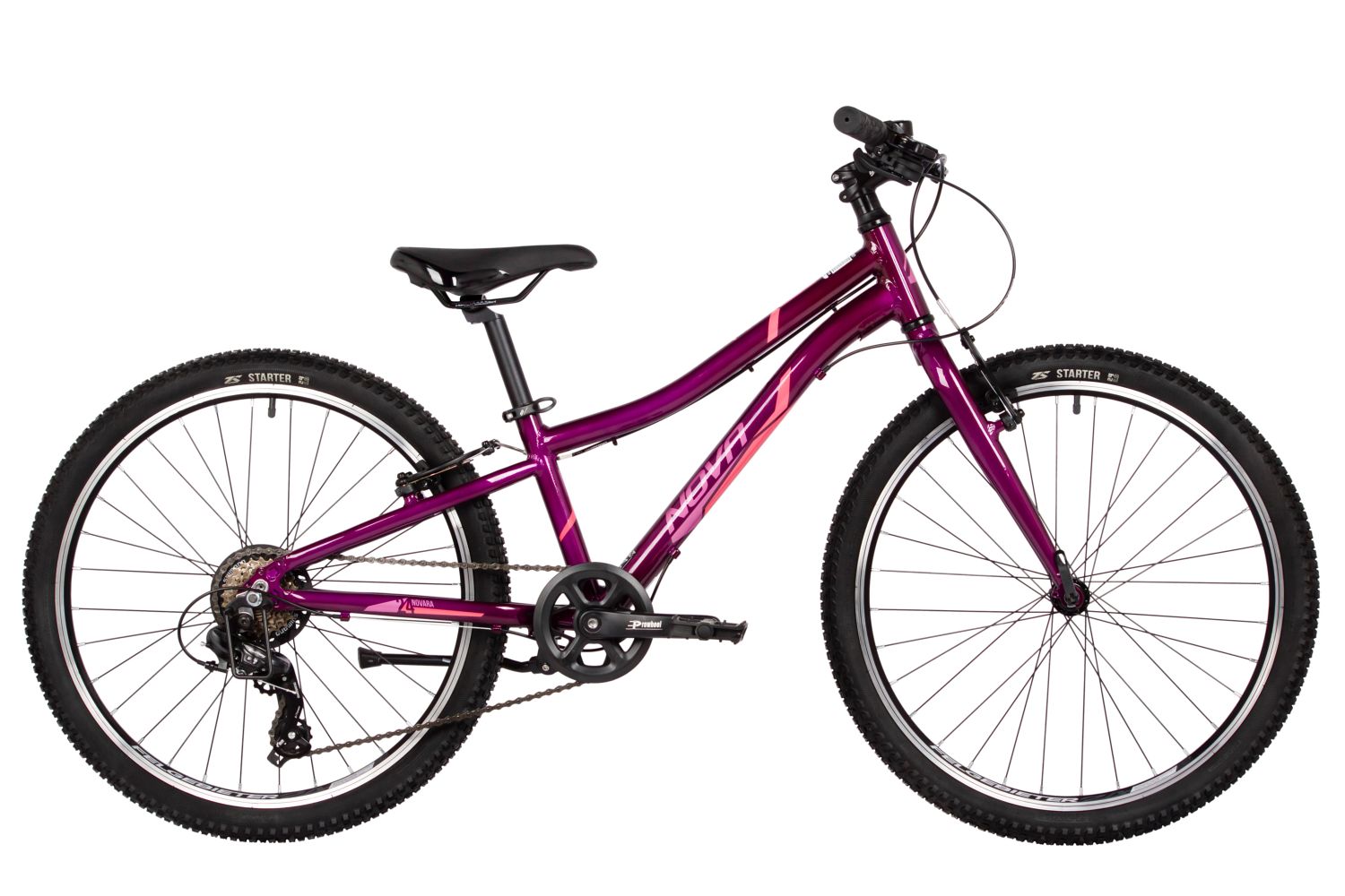 Велосипед NOVATRACK 24, NOVARA алюм.рама 10, фиолетовый, 6 скор, TY300/TS38/TZ500, V-Brake, жёсткая