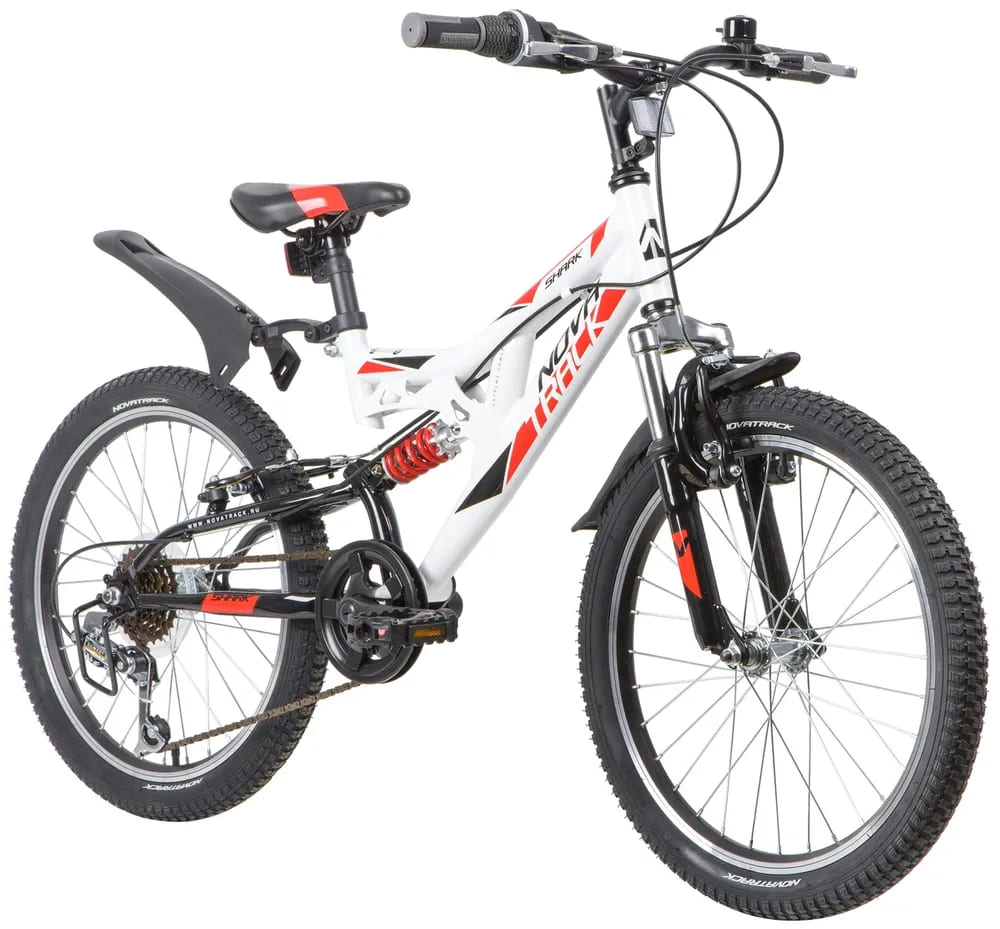 Велосипед NOVATRACK 20, SHARK белый, сталь, 6-скор, Microshift/Power, V-brake