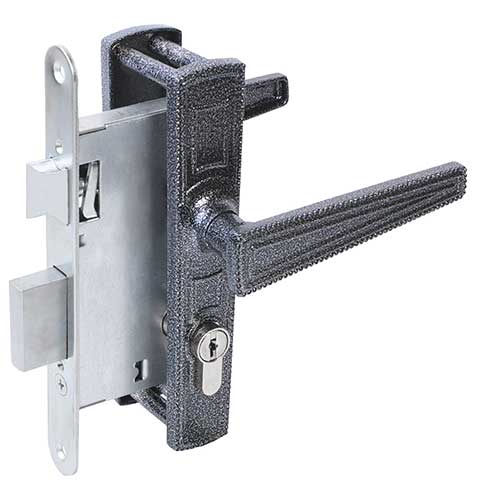 Замок врезной с ручками. Предназначен для установки в деревянные двери толщиной до 45мм, правого и левого открывания. Ригель прямоугольного сечения, вылет 22мм. Универсальная защелка. Стальной корпус, покрыт гальваническим покрытием