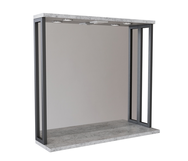 Зеркальный шкаф, БРУКЛИН, 80 Бетон с подсветкой ЛОФТ, ЛДСП